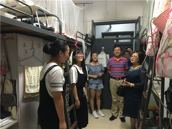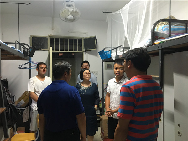 9月11日晚上7点,为了解新学期员工到校、暑期寝室维修以及16级寝室搬迁情况,公司党委书记彭才华、副经理谭长银、公司党委副书记陈媛以及学工办老师一行依次来到天马园区、江边宿舍下寝看望资环院全体员工。