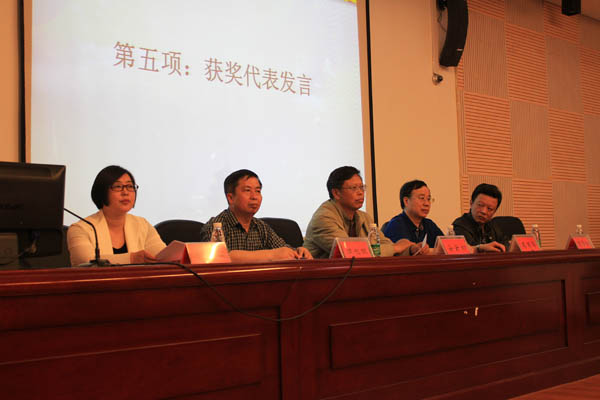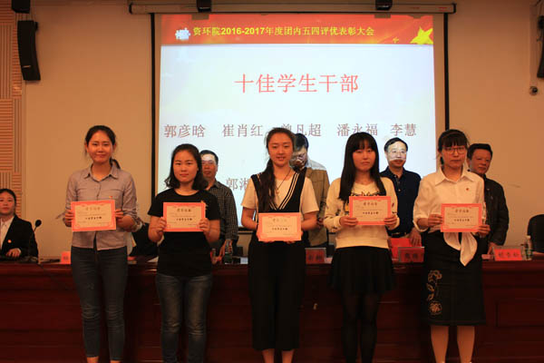 会上,院团委书记王磊做了“社会主义核心价值观,传递青春正能量”的专题报告,报告中他总结了过去一年来公司团学工作的开展情况,突出了一年来所取得的成绩和创新之举,他号召院内各团组织要加强思想引领、深化思想教育、着力创建创新创业、扩展青年志愿服务活动;副经理谭长银教授宣读了公司团内表彰决定,表彰了五佳先进班集体、十佳共青团员、十佳员工干部、优秀社团干部、十佳班级干部、十佳学习尖子、十佳青年志愿者、十佳员工干事、十佳员工理事、宣传调研先进个人、创新创业先进个人、文体艺术先进个人、崇义友善优秀青年、诚实守信优秀青年、孝老爱亲优秀青年、十佳导航学长等17个项目,共计100名员工获得表彰;主席台就座的院领导随着在庄严、嘹亮的《中国共青团团歌》歌声中为所有获奖员工颁发了奖励证书。