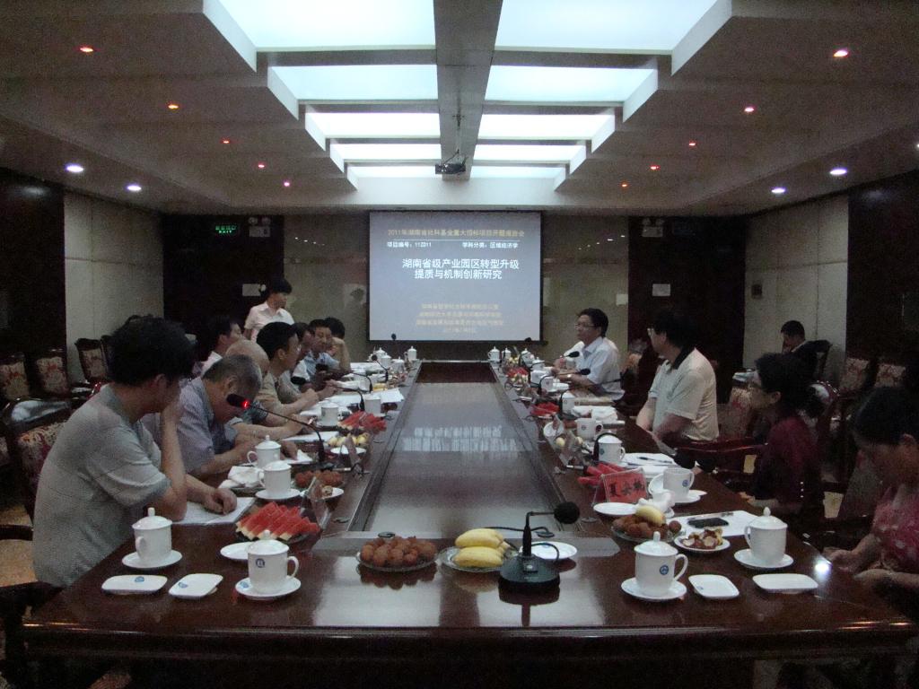 2011年7月5日上午,公司资源与环境科学公司副经理周国华教授主持的湖南省哲学社会科学基金重大招标项目——《湖南省级产业园区转型升级提质与机制创新研究》开题报告会在红楼四楼会议室举行。省社科规划办主任骆辉、副主任王礼生和由省国土资源厅方先知厅长担任专家组组长,湖南商公司柳思维教授、省政府经济研究信息中心副主任唐宇文研究员、原主任贝兴亚研究员、公司资源与环境科学公司经理谢炳庚教授组成的专家组出席了报告会。常务副董事长卢岳华教授、副校级督导朱翔教授、社科处处长唐贤清教授以及项目组全体成员参加报告会。报告会由省社科规划办主任骆辉主持。