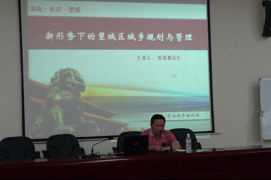 本次讲座邀请望城区城乡规划局周国如局长担任主讲。周局长长期从事规划管理工作,实践经验丰富。他围绕“新形势下的望城区城乡规划与管理”这一主题,首先介绍了望城区的地理区位和面临的新形势,并对望城规划情况做了重点的阐述和介绍,同时强调了民本、数字、精细、阳光四大规划原则及大力推行城乡规划立法的重要性。