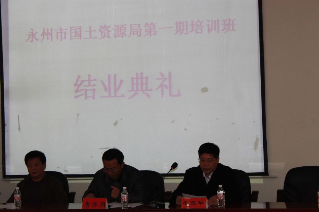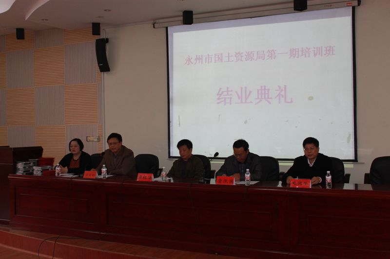 2010年12月10日上午,永州市国土资源局在职人员培训班在公司301报告厅举行结业典礼。省国土资源厅人事教育处梁祖海副处长、永州市国土资源局唐涨国副局长、公司安云初副经理等出席结业典礼。