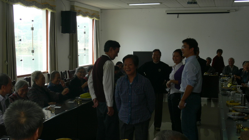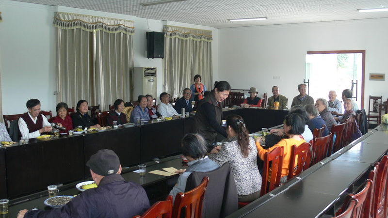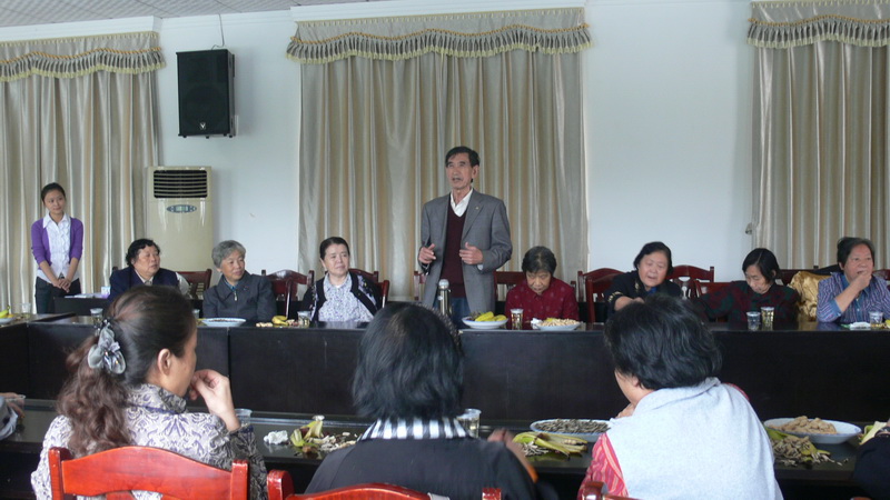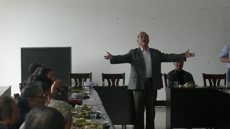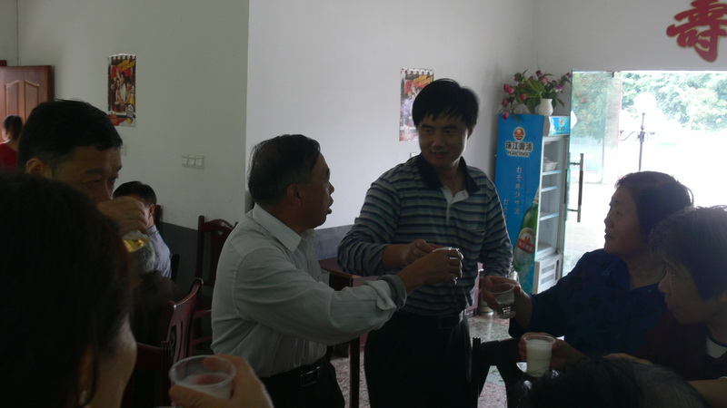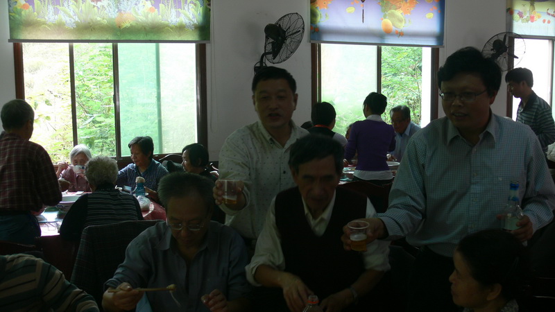 经理谢炳庚教授给老同志敬酒,祝老同志健康长寿