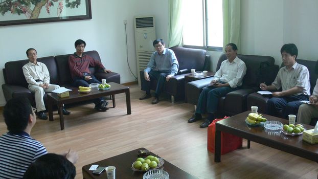 2010年5月24日,广西师范大学环境与资源公司经理陈孟林教授一行5人来公司交流,公司经理谢炳庚教授,书记向宏艾老师,副经理周国华教授,地理信息系主任秦建新教授,实验室主任韩广教授与广西师大的老师进行交流,周国华教授向客人介绍公司的情况。