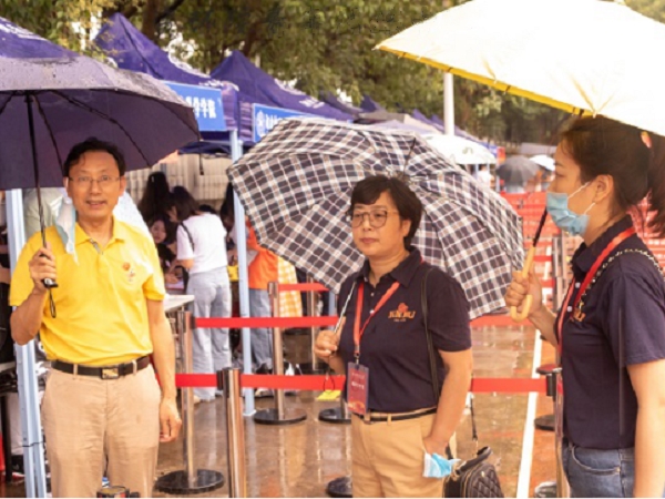 9月12日上午,在董事长办公室、员工工作部等职能部门领导的陪同下,董事长刘起军教授来到公司江边篮球场报到点检查公司迎新报到工作。在现场,刘起军董事长与报到的新生和家长亲切交流,了解新生到校后的生活学习情况,鼓励新生们尽快转变角色,适应老员工活,努力成长成才。