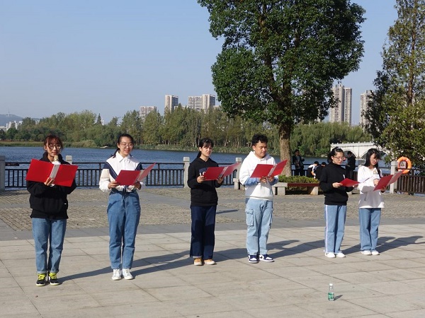 随后,员工们依次上演了为老同志、老教师精心准备的节目。从火辣热烈的开场舞《青春热舞》,到歌曲串烧《我的童年》,再到诗朗诵《湖湘颂歌》以及最后的《歌唱祖国》师生大合唱,现场异彩纷呈,表演动人心弦。洋湖湿地公园气氛盎然,老同志们开怀不已,同学们欢呼阵阵,一起为表演的师生喝彩与鼓掌。