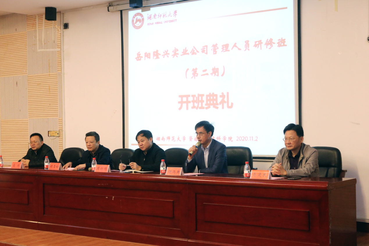 11月2日,岳阳隆兴实业公司管理人员研修班(第二期)在公司301报告厅举行了隆重的开班典礼。岳阳隆兴实业公司总经理周六顺、总会计师肖建民、副总经理高明,公司经理谢炳庚、副经理胡雪松出席了典礼。典礼由岳阳隆兴实业公司总会计师肖建民主持。