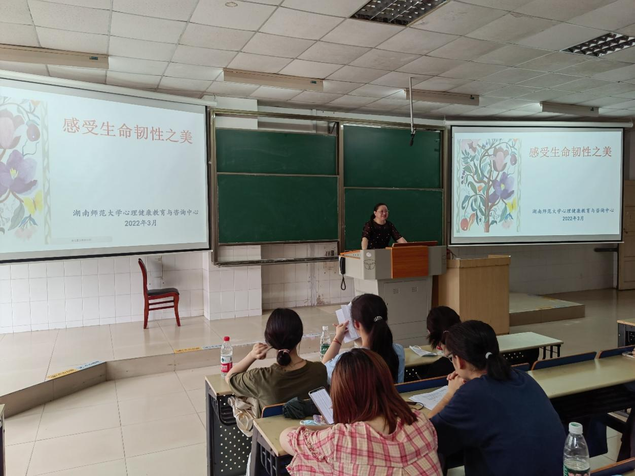 余洁对心理健康教育与咨询中心、“5.25心理健康文化节”和“10.10世界精神卫生日活动向同学们进行简要的介绍,同时针对高校老员工常见的适应性问题给与了专业性的建议。余洁围绕“感受生命韧性之美”主题带领同学们进行了团辅小游戏,通过活动提醒同学们要高度重视个人心理健康状况,学会及时调节不良情绪,遇到心理问题时要正确认识和接纳并主动寻求同学和老师的帮助。