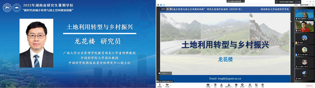 2022年7月24日上午,龙花楼研究员以“土地利用转型与乡村振兴”为题,主要讲授了土地利用转型研究引入与发展、土地利用转型研究理论与方法,乡村重构与土地利用转型的关系、乡村振兴的土地利用转型路径等内容。