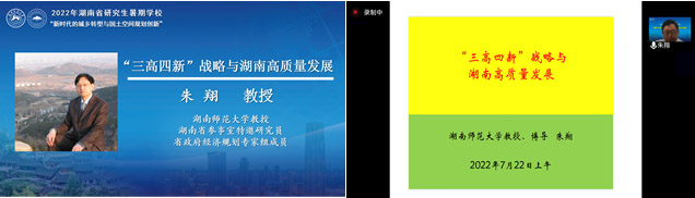 2022年7月22日下午,朱翔教授的授课题目为“‘三高四新’战略与湖南高质量发展”,主要围绕湖南省发展格局及其在全国的地位、湖南省“三高四新”与高质量发展战略背景与工作重点、长株潭城市群一体化与湖南省强省会战略等内容进行讲解。