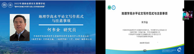 2022年7月22日上午,何书金研究员的授课题目为“地理高水平论文写作范式与注意事项”,主要围绕地理资源期刊的现状及影响力、地理资源刊群的定位与论文组织服务、学术规范与诚信问题、高水平论文写作范式与注意事项等内容进行讲解。