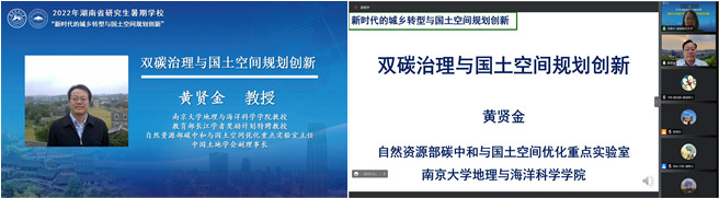 2022年7月23日上午,黄贤金教授以“双碳治理与国土空间规划创新”为题,主要讲授了双碳治理的提出、国土空间碳源/汇格局、自然资源配置与碳源/汇、基于双碳目标的国土空间规划等内容。