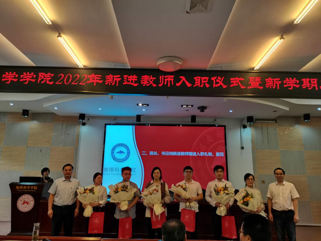 全院教职员工参加新进教师入职仪式和新学期工作会议。