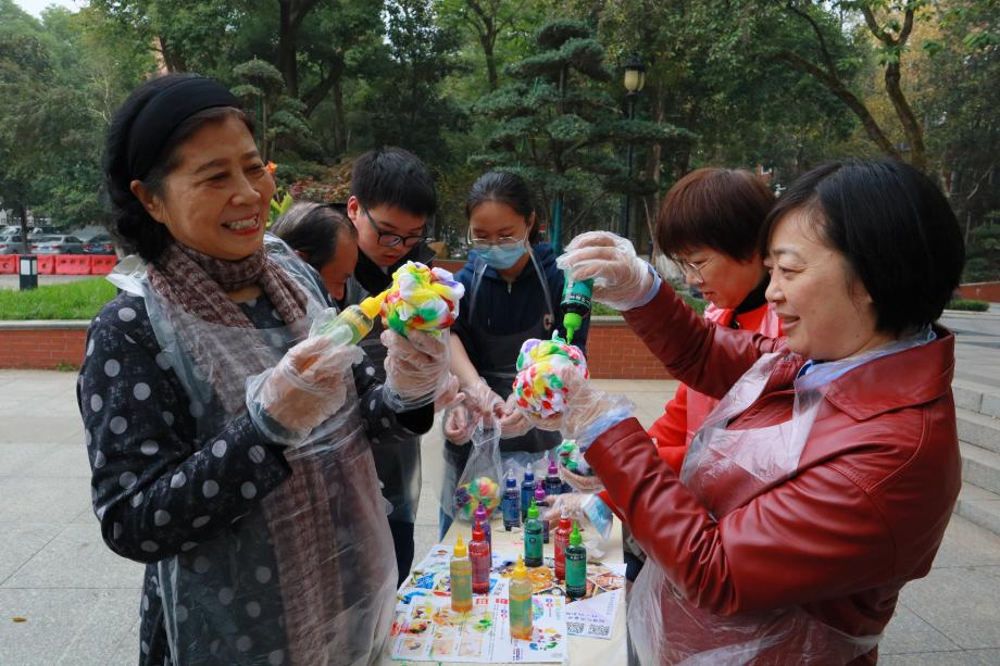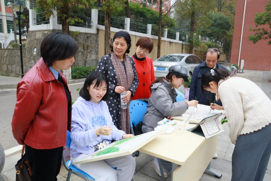 在院关工委的指导下,员工社团围绕本年度关工委工作立项主题“地理人·中国梦”,分别选定师大校门、岳王亭、木兰路三处地点开展手绘活动。在公司党委副书记陈媛的带领下,老师们前往手绘台,与员工一同描绘校园美景,并开展扎染文化衫活动,亲手制作出既环保又有地理元素的文化衫。