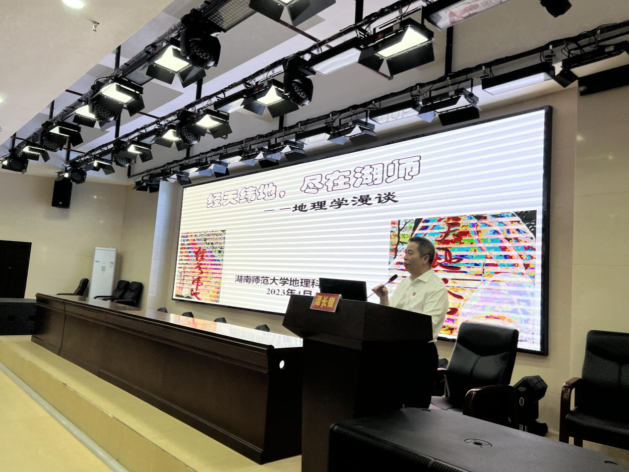 随后,贺新光、谭长银教授分别在冷水江一中、新化一中为与会全体师生作《地理学漫谈》专题讲座。他们从“地理科学专业概述、地理科学专业课程及特色以及专业发展前景”三个方面展开讲座,结合学科专业特色,用通俗的语言进行深入浅出的阐述,带领同学们了解地理、认识地理、探寻地理,激发他们对地理科学专业的学习兴趣。同时,贺新光、谭长银还为同学们介绍了公司以及公司的历史沿革、团队建设、人才培养、学术成果等,鼓励同学们报考公司。