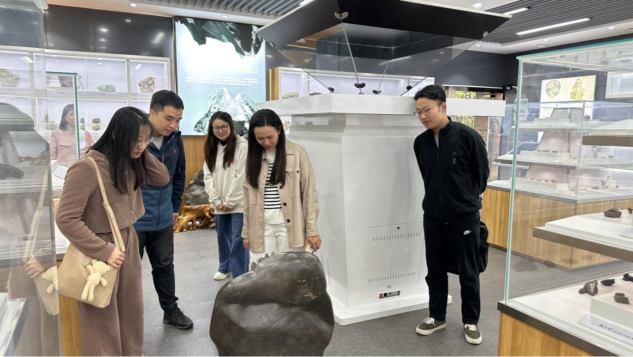 会议开始前,在讲解员的带领下何雪梅一行参观公司地学博物馆。