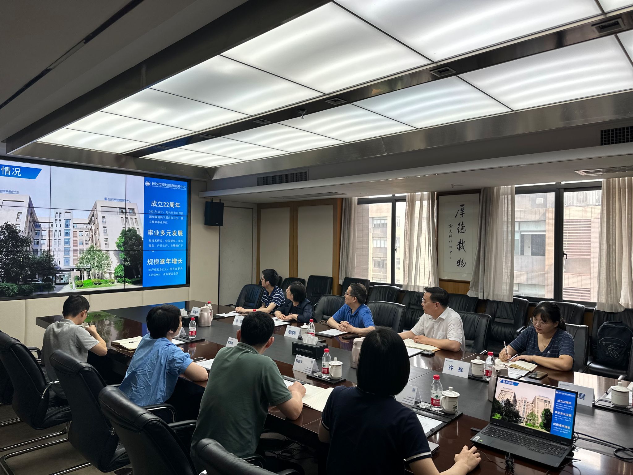 5月19日下午,为贯彻党中央、国务院关于高校毕业生就业工作的决策部署,持续推进“访企拓岗促就业”专项行动,搭建高校与企业的沟通桥梁。公司经理周国华、公司党委书记刘忠耿、党委副书记陈媛等一行6人前往长沙市规划信息服务中心开展访企拓岗工作。长沙市规划信息服务中心党总支书记欧景雯、总工程师唐群峰、主任助理苏富平、人力资源部部长彭降汝出席参加座谈。
