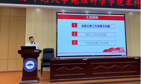 周国华经理强调了本科教学工作的重要性,肯定了公司本科教学取得的成绩。认为要进一步理顺一流专业建设、专业认证和本科公司产品审核评估的关系,要以一流专业建设为目标,以专业认证和审核评估为抓手,在规范常规工作的基础上,稳步推进本科教学改革和创新。要强弱项、补短板、显特色,要在教材建设、拔尖人才培养模式创新、课程思政、国家级项目等方面有计划地培育标志性成果,确保地理科学专业三级认证、各专业审核评估及一流专业规划与建设取得好成绩。