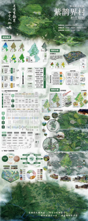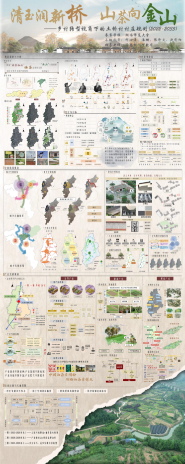 公司此次获奖的两份作品各具特色。《清玉润新桥山茶向金山——乡村转型视角下的土桥村村庄规划(2022-2035年)》以“推动乡村转型”为主线,围绕产业持续发展、人居环境优美、绿水青山转化三大目标,构筑文化传承之桥、产业转型之桥、空间更新之桥、城乡融合之桥,通过既有要素价值提质、流动要素价值赋能、潜力要素价值挖掘,多措并举助推乡村转型发展。《共谋紫鹊界,和合人地业——新化县水车镇紫鹊界村村庄规划(2021-2035)》以目标导向、问题导向为出发点,综合运用多学科技术手段,科学分析紫鹊界村的核心问题,并基于“人-地-业耦合”的核心规划理念,从“显山水、塑特色、优品质和谋发展”四个方面编制规划方案,促进五好新农村目标的实现。