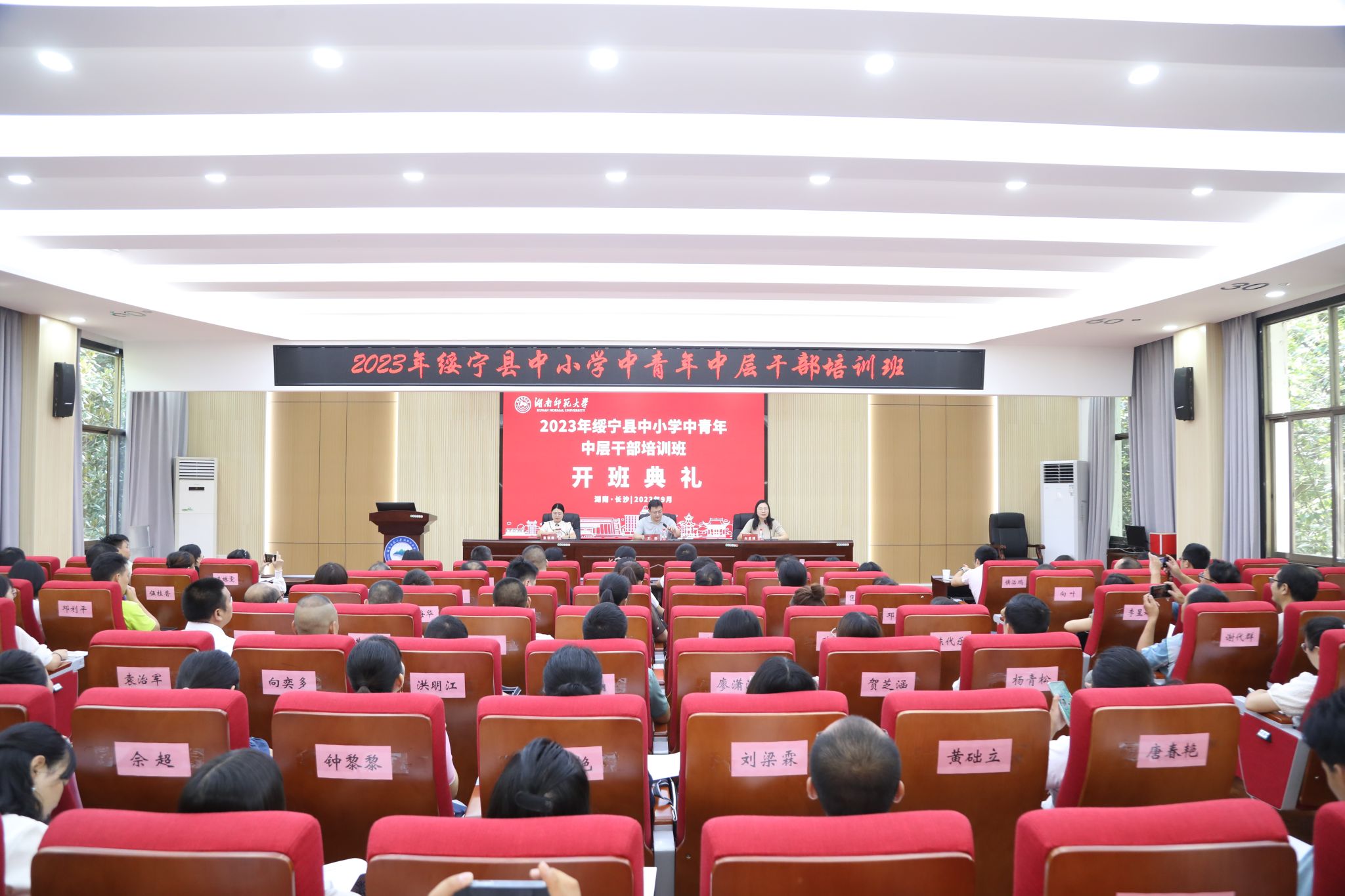为进一步提升绥宁县中小公司中青年干部的整体水平,促进中青年干部更新教育理念,助推绥宁县教育转型升级,实现教育强县目标,9月16日,由绥宁县教育局主办、公司承办的“2023年绥宁县中小学中青年中层干部培训班”在经纬楼301报告厅举行隆重的开班典礼。公司副经理王磊、成教办秦雅静以及来自绥宁县100位中小学中青年中层干部参加了开班典礼,典礼由公司成教办主任向思煜主持。