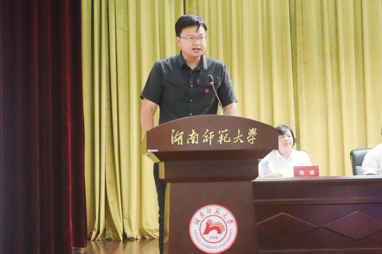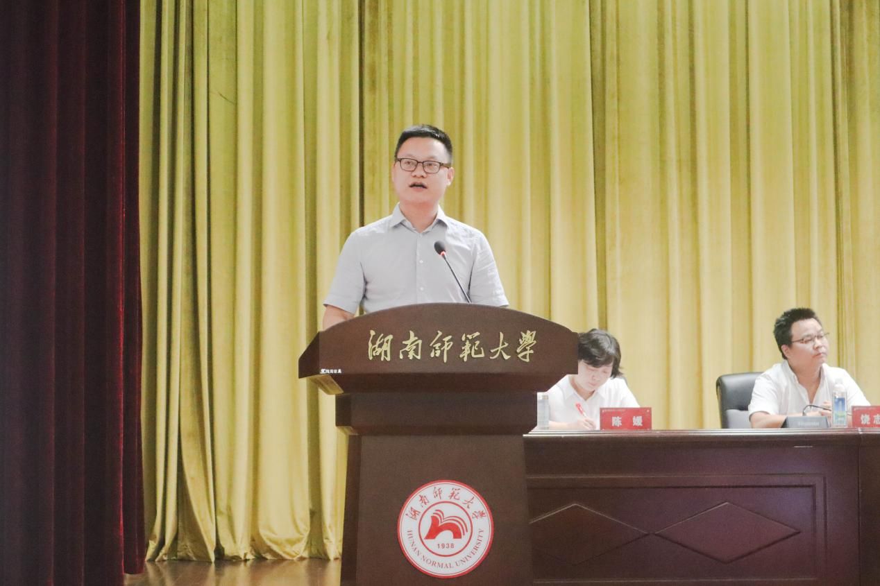 公司硕士生导师、湖南省国土空间规划学会科普工作委员会委员、中国地质学会会员、公司地学博物馆馆长、地理科学系副系主任易立文副教授代表教师发言。他希望同学们传承和弘扬“仁爱精勤”的校训精神,争做标杆,追求卓越,在mksport体育书写人生最美丽的青春篇章。