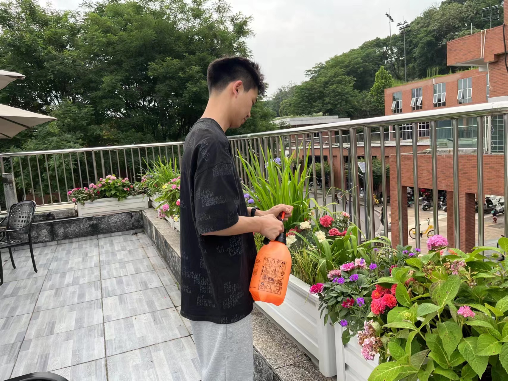 随后,大家一起为“木兰花开”劳动教育实践基地揭牌。在参观劳动教育实践基地中,陈媛不仅对师生劳动成果表示赞美,也对花箱中部分植株生病的现象表示关心,指出需加强对于花箱植株的护养工作,针对不同类型的植株应采取适合的方式。