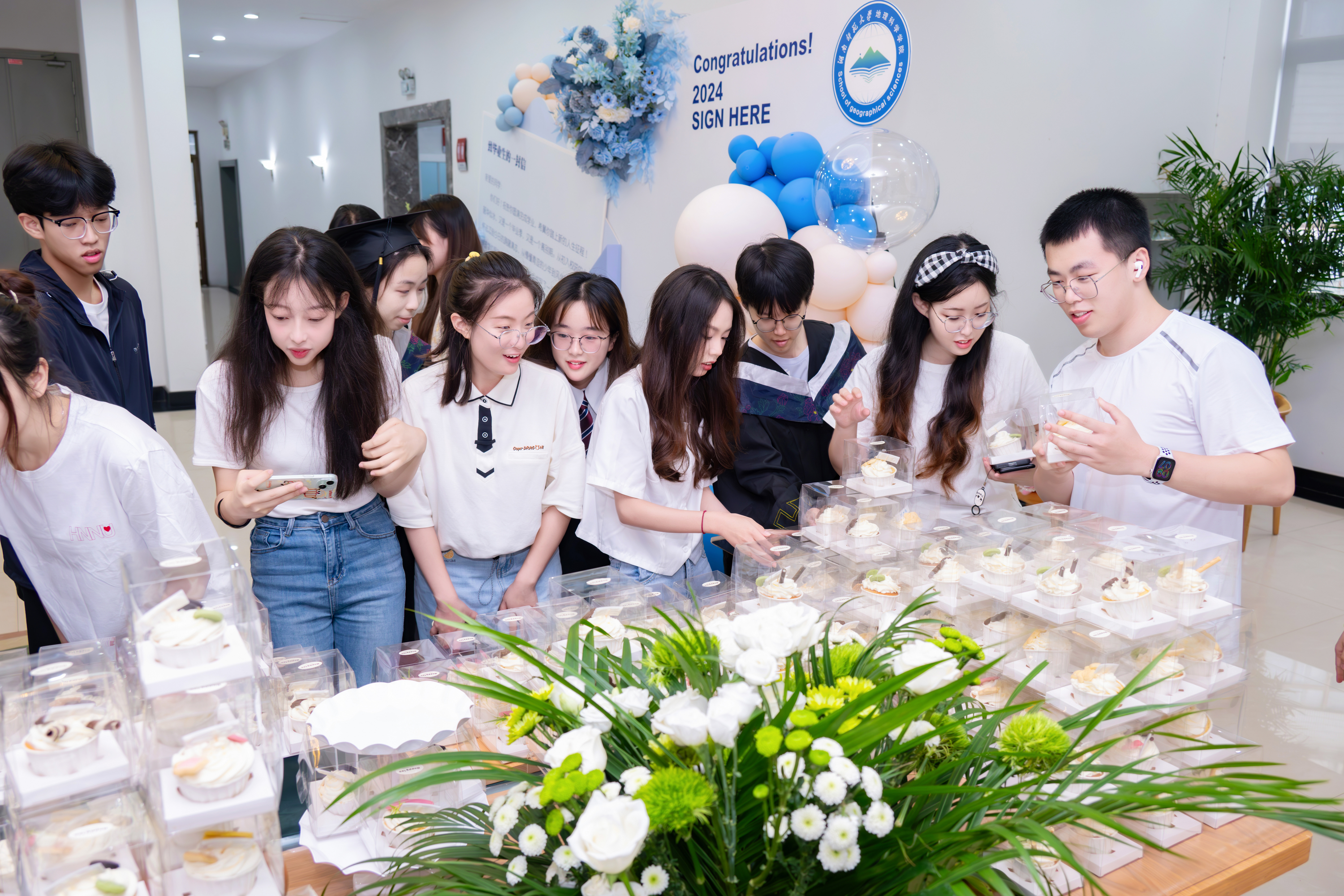 公司为每一位2024届毕业生订制了一份专属他们自己的蛋糕,并为同学们准备一份具有师大文创元素的伴手礼,并为同学们制作了留念拍照的打卡点,300余名毕业生和家长代表参加了毕业典礼暨欢送会。
