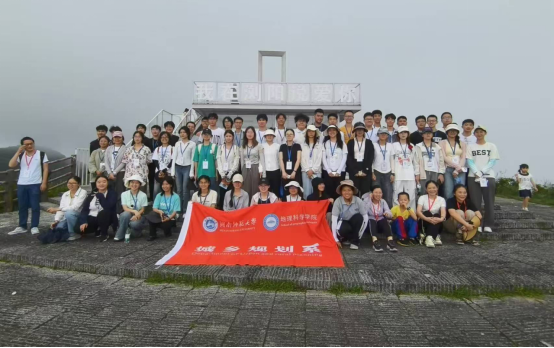 8月25日上午7时许,自咸嘉湖校区出发,首先抵达的是距离长沙市区148公里的浏阳市(长沙代管县级市)东北部的大围山国家地质公园。大围山地处花门-藤桥复背斜的次级褶皱上,森林植被主要由原始次生林、人工林构成,有3000余种植物、60余种野生动物、1200余种彩蝶。据研究,大围山花岗岩体同位素年龄达8.37亿年,经历大姑、庐山两次冰期,保留了较完整、系统的第四纪冰川活动遗迹。围绕“自然资源保护与旅游产业发展”主题,实习队先后考察了大围山地质博物馆、七星岭、祷泉湖、玉泉湖冰窖、栗木桥U形谷,进一步深刻认识了垂直自然地带、沼泽湿地、悬瀑、云雾景观等自然地理现象,以及角峰、刃脊、冰桌、冰臼等典型冰川地貌遗迹。大围山的实地考察,同学们加深了对如何在保护自然资源的同时,合理开发和利用旅游资源,以促进地方经济发展的认识。