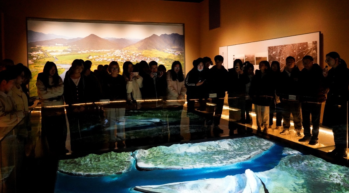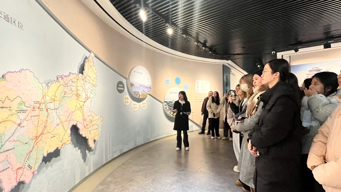 一路向西,师生们来到了宁乡市民之家。宁乡市民之家大厅中央刻了八个大字——传奇之地,安宁之乡。在市民馆中,我们对宁乡深厚的文化底蕴有了一定的了解,其特色的书院文化、青铜文化和红色文化在展馆中都有详细的介绍。此外,市民之家对宁乡市行政区划、历史变革、城市风貌、交通区位、传统习俗和地方特产等各方面均做了说明,师生们对宁乡有了一个比较全面的认识,为后续的特定地点实习起到了承上启下的作用。
