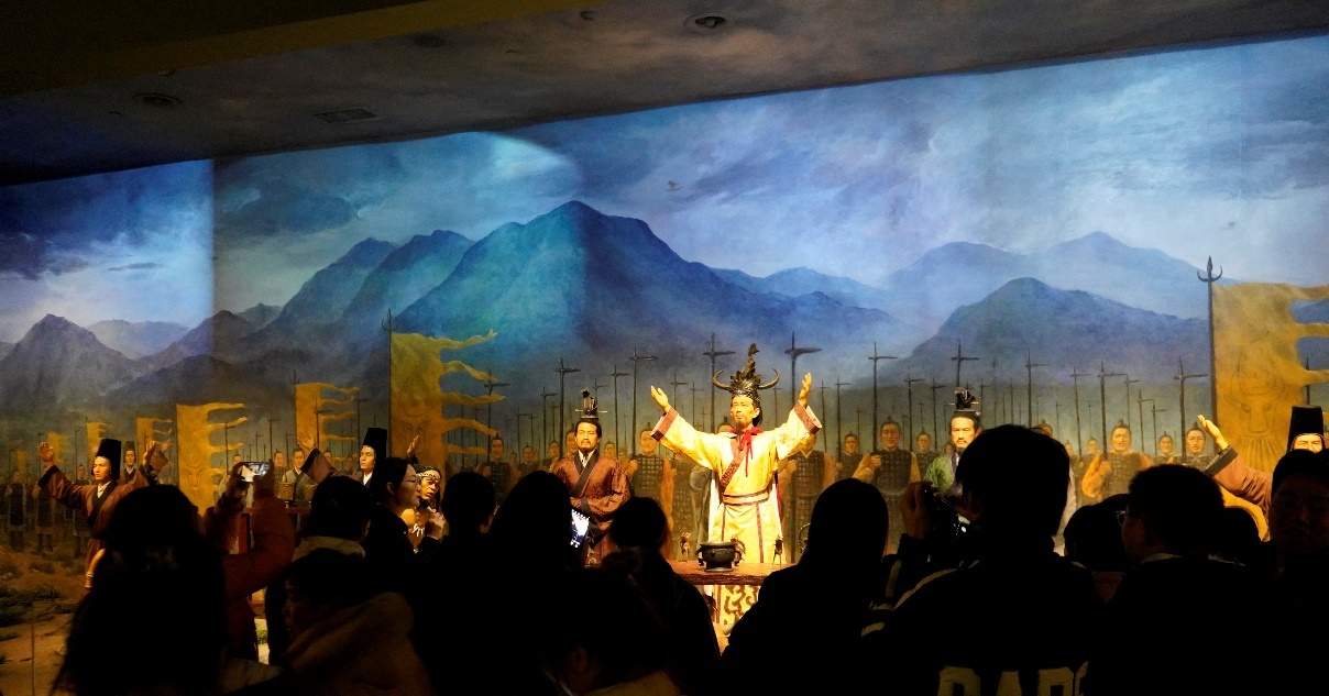 “青铜文化是中国古代文明史上的一个重要里程碑”。实习师生抵达了坐落于有“中国南方青铜文化中心”美誉的宁乡黄材盆地的炭河里青铜博物馆。博物馆内展出四羊方尊、人面纹方鼎等众多宁乡发掘出土的青铜重器。大厅内展出的四羊方尊放大复刻品震撼人心,历史气息扑面而来。跟随讲解员的步伐,实习师生领略了炭河里青铜文化的“方国遗踪”及其背后的故事,欣赏了“相约三千年,走进炭河里”美术作品展。紧接着。同时,也引发了实习师生对于区域文化与区域高质量发展的思考。