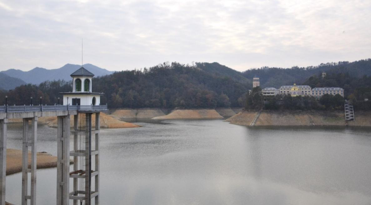 继续向西,来到此次实习的最后一站——黄材水库。来到水库大坝上,俯瞰水库内外的冬日生态风光和山脚的人间烟火。公司员工艾志军主任向员工们介绍了水库建设历史及其基本情况,介绍了水库建设及其与当地农业与城镇发展的关系。老师们引导员工思考黄材水库选址、建设管理及功能作用的变化,强调水利设施建设的重要性及其水库多功能作用的发挥与永续利用。