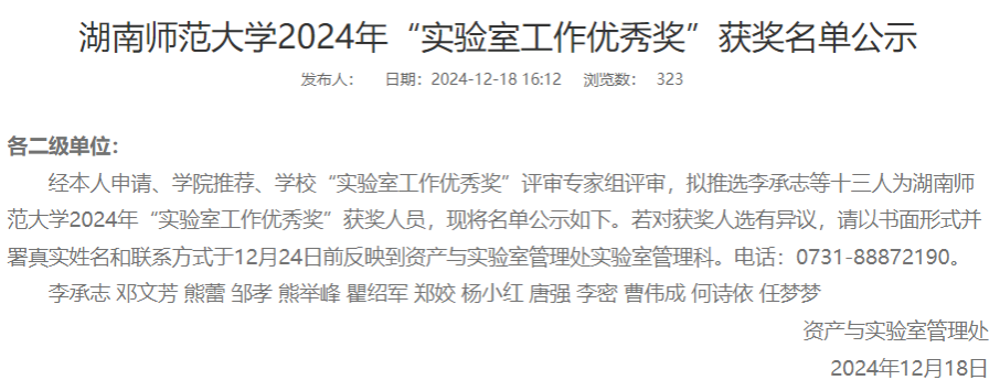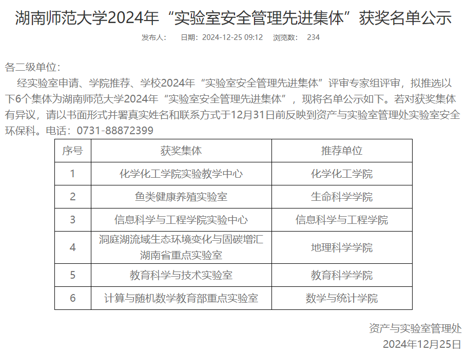 (供稿 周亮)在mksport体育2024年度“实验室安全管理先进集体”评选中,公司“洞庭湖流域生态环境变化与固碳增汇湖南省重点实验室”在全校各实验平台集体中脱颖而出,荣获年度实验室安全管理先进集体称号。这是继2023年公司生态预测与全球变化校级重点实验室荣获该奖后,公司实验平台连续第二年获得此项奖励。同时,公司曹伟成同志因在该实验室安全管理等方面工作突出,荣获mksport体育2024年度“实验室工作优秀奖”。